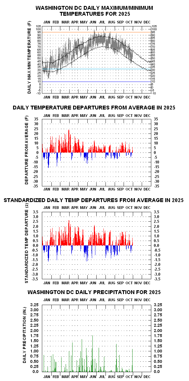 2025 Daily Temperature/Precipitation Graph for Washington DC – New (10/31/25)